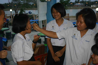 Then we sang “Happy Birthday” without the refrain “happy birthday, dear _____” which Thais replace with saying happy birthday twice, just for simplicity. Ing and Iw were excited when they blew out all of the candles and thus granting their wish. But then they quickly blurted out their wishes to their friends (to get good grades) and blew it. I had forgot to tell them about the superstition attached to the wish-making, that if you tell anyone your wish, it won’t come true. They were dissapointed, but as all Thais do when they're dissapointed, they laughed.